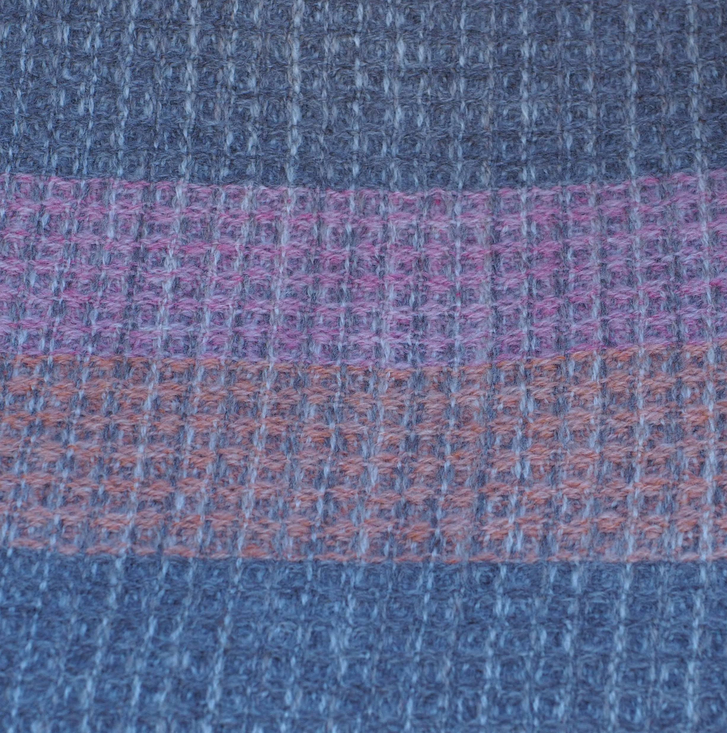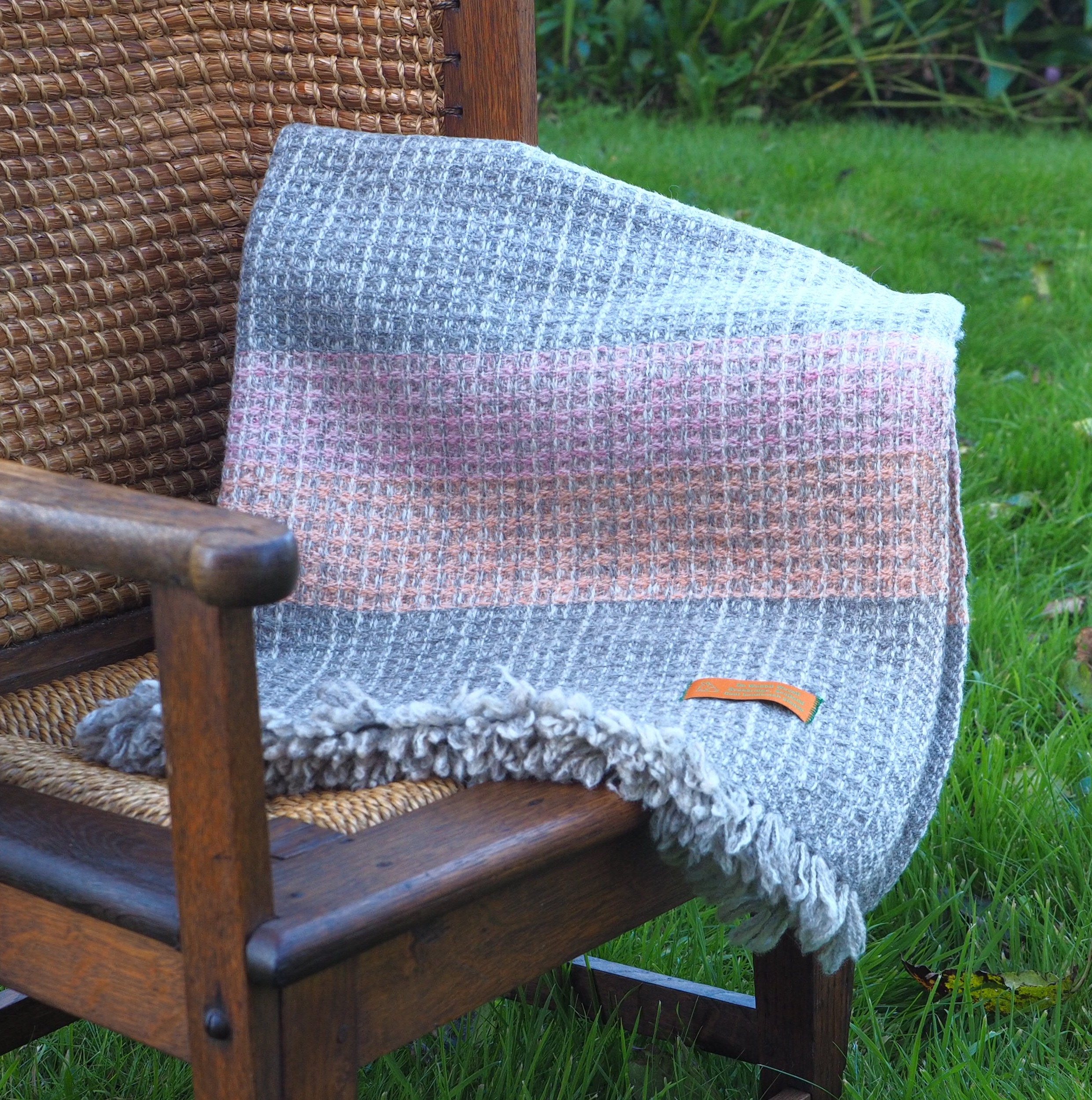 The yarn is a mix of 50% Lambswool and 50% native wool spun in Shetland. Earthy natural fleece colours, a subtle matching stripe and the classic brighton honeycomb weave structure combine to give these comfortable lap blankets their unique look and handle. They are made to last and could stay with the family for years. Soft and light, warm and tactile, they are quite difficult to let go of!