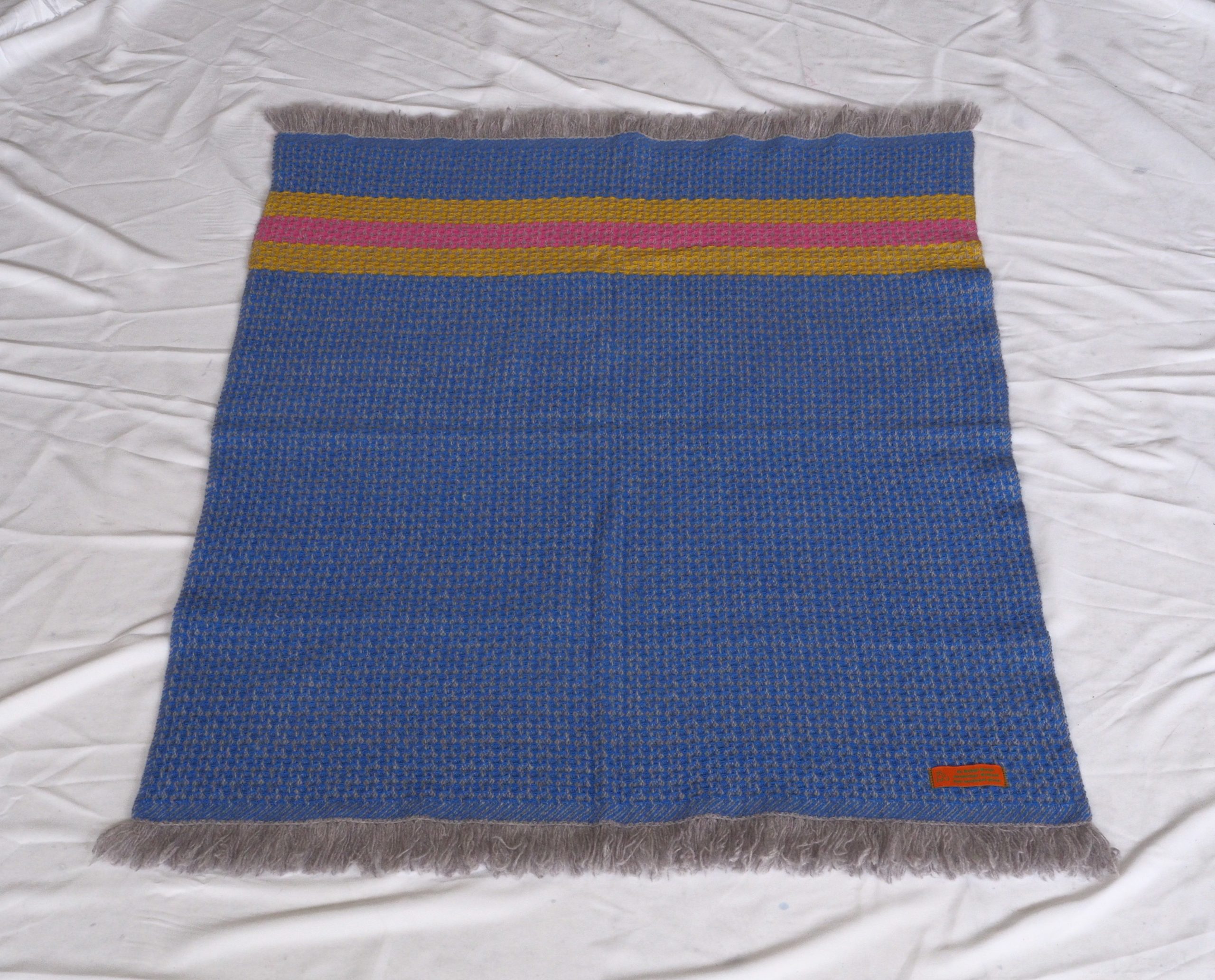 Made 100% by hand. Blankets are woven on the 24-shaft hand loom, hems are hand-sewn, then each piece is hand-washed and finished.